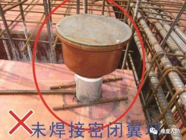 a.防爆地漏未焊接密閉翼環(錯誤做法):