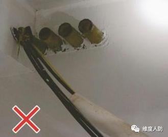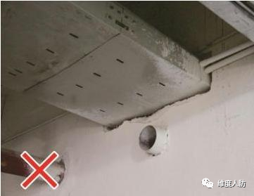 c.由于前期未做好預埋,后期弱電安裝時出現亂鉆孔現象(錯誤做法):
