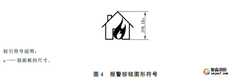 3.7.3.2.1宜在報警按鈕前面板的上部居中標注如所示的圖形符號或起同等作用的文字,符號和文字應為白色。