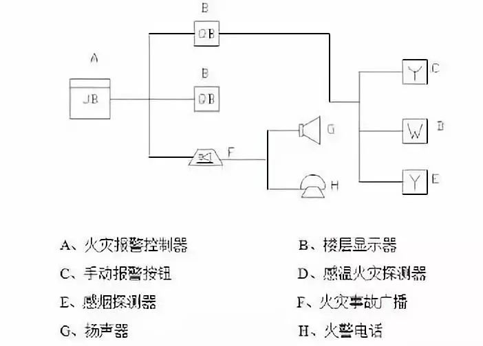 火災(zāi)自動(dòng)報(bào)警系統(tǒng)的基本結(jié)構(gòu)如圖: