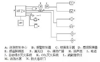 本系統(tǒng)的消防設(shè)施工作原理如圖: