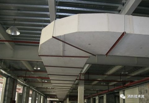 2、耐火極限不小于0.5h的風管(如車庫排煙管、消防補風風管、前室吊頂內的加壓風管),外表面均勻刷防火漆涂料3遍