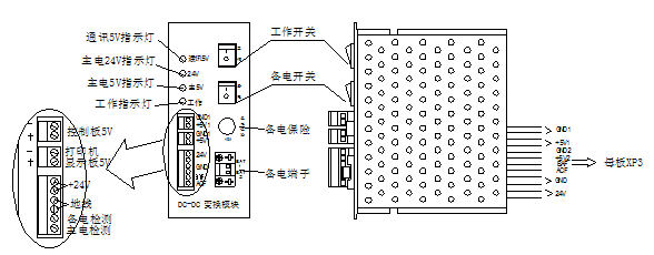 注意:當(dāng)DC-DC變換模塊的開關(guān)關(guān)閉時,總線控制24V并未關(guān)斷,如需插拔主機箱內(nèi)的線路板,請務(wù)必先關(guān)閉主、備電電源。