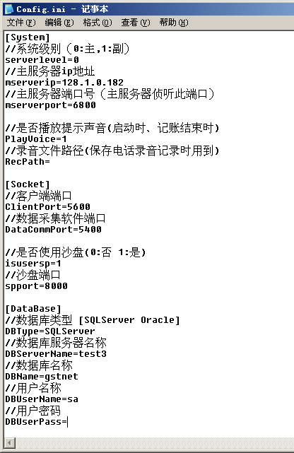 配置后臺控制軟件后打開c:program files GSTNet_ClientMaintain目錄下的配置文件config.ini,其中的設置項有:[Server]