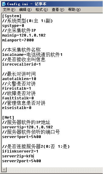 mainip=128.1.0.182 //主采集軟件IP,當為主采集軟件時綁定此IP,為備份采集時連接此IP。