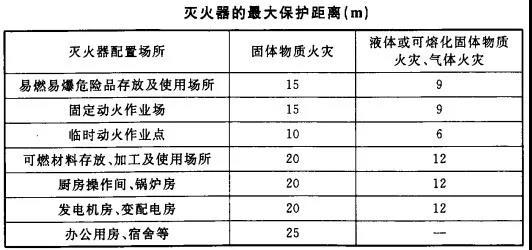 (4)滅火器的最大保護距離應符合下表的規定。