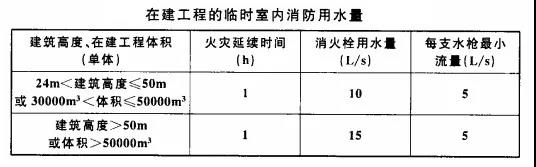 2、臨時消防用水量應為臨時室外消防用水量與臨時室內消防用水量之和。