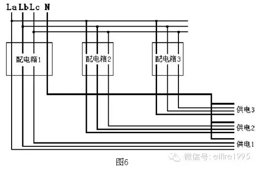 在這個電路中,只有總進線處及供電1、2、3 路可以裝設(shè)漏電保護裝置(并要確保它們后面都是各自獨立的),其他位置都無法裝設(shè),包括所有三個配電箱。