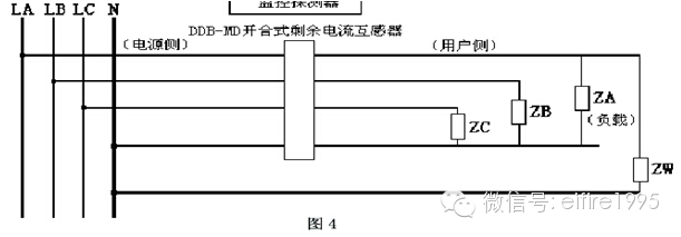 3、用戶側(cè)線路不獨立,相線有負載接到互感器前的零線或用戶系統(tǒng)外的總零線,如圖4。