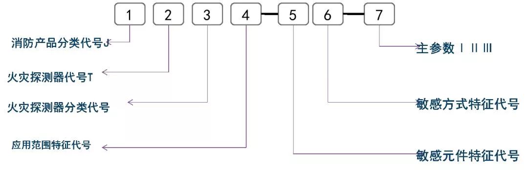 火災(zāi)探測(cè)器產(chǎn)品型號(hào)編制示例: