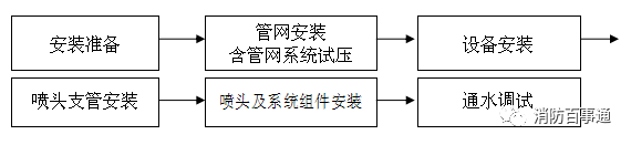(1)噴淋系統安裝完成后應整體通水使系統達到正常的工作壓力以備調試。
