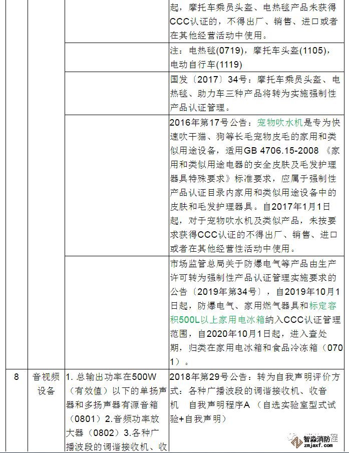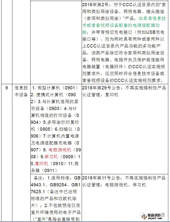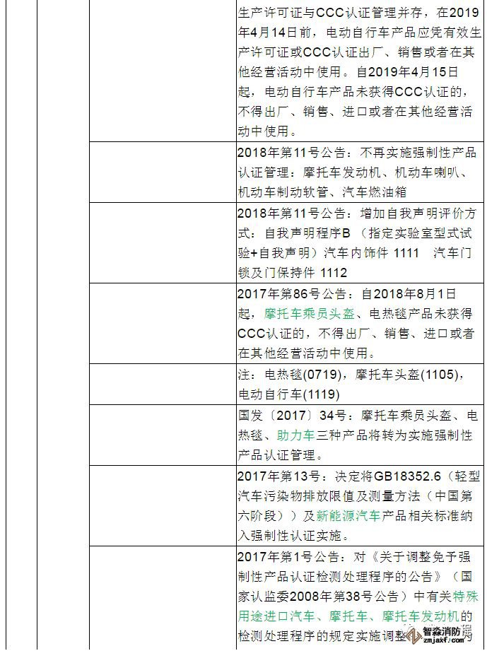 備注:以上分類以國家認監委2014年第45號公告《國家認監委關于發布強制性產品認證目錄描述與界定表的公告》(2014年12月發布)為基礎。2014年12月以后的目錄調整情況,已經在備注中注明,可查詢相關文件獲取準確信息。以上內容更新至2019年7月12日。