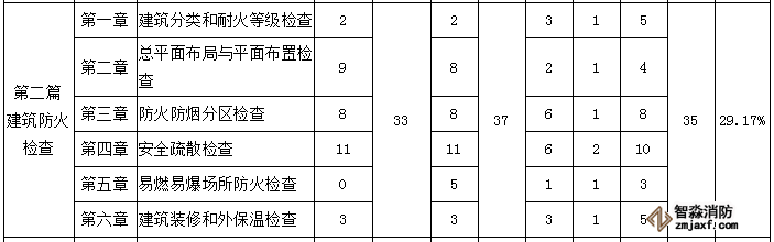 由此可看出,在消防綜合能力第二篇預習中,所占分值較高的是第四章安全疏散檢查和第三章防火防煙分區(qū)檢查,需要重點掌握。