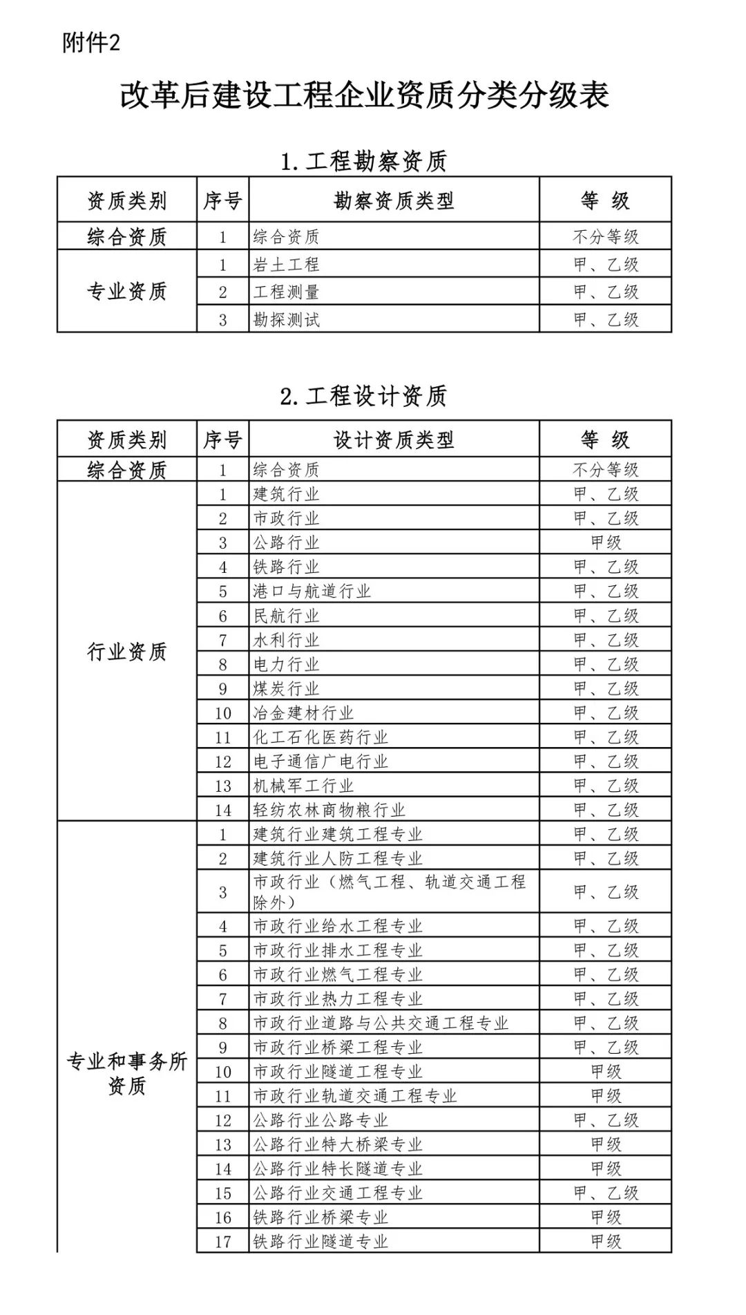 2.改革后建設(shè)工程企業(yè)資質(zhì)分類分級表