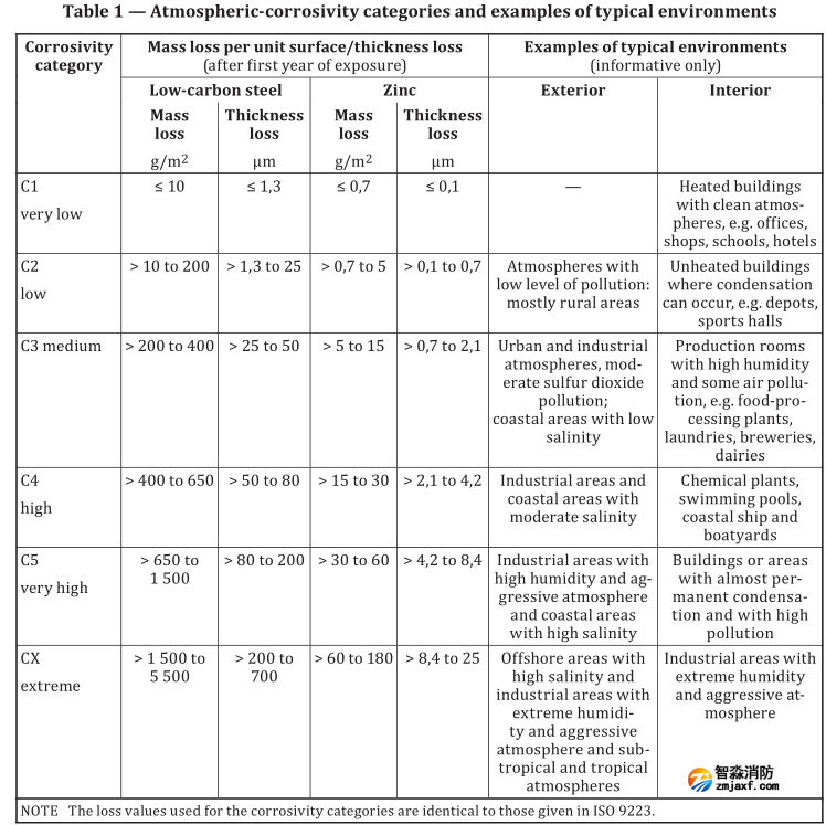 等級(jí)劃分:共6類(lèi)(C1~C5+CX),字母C是“Corrosivity(腐蝕性)”的縮寫(xiě);