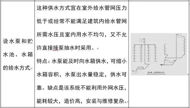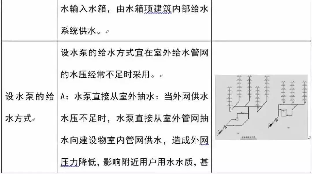 當(dāng)室外給水管網(wǎng)的水壓不足或建筑物內(nèi)部對(duì)供水安全性和穩(wěn)定性要求比較高時(shí),需在給水系統(tǒng)中設(shè)置水泵,水箱、氣壓給水設(shè)備和儲(chǔ)水設(shè)備等。