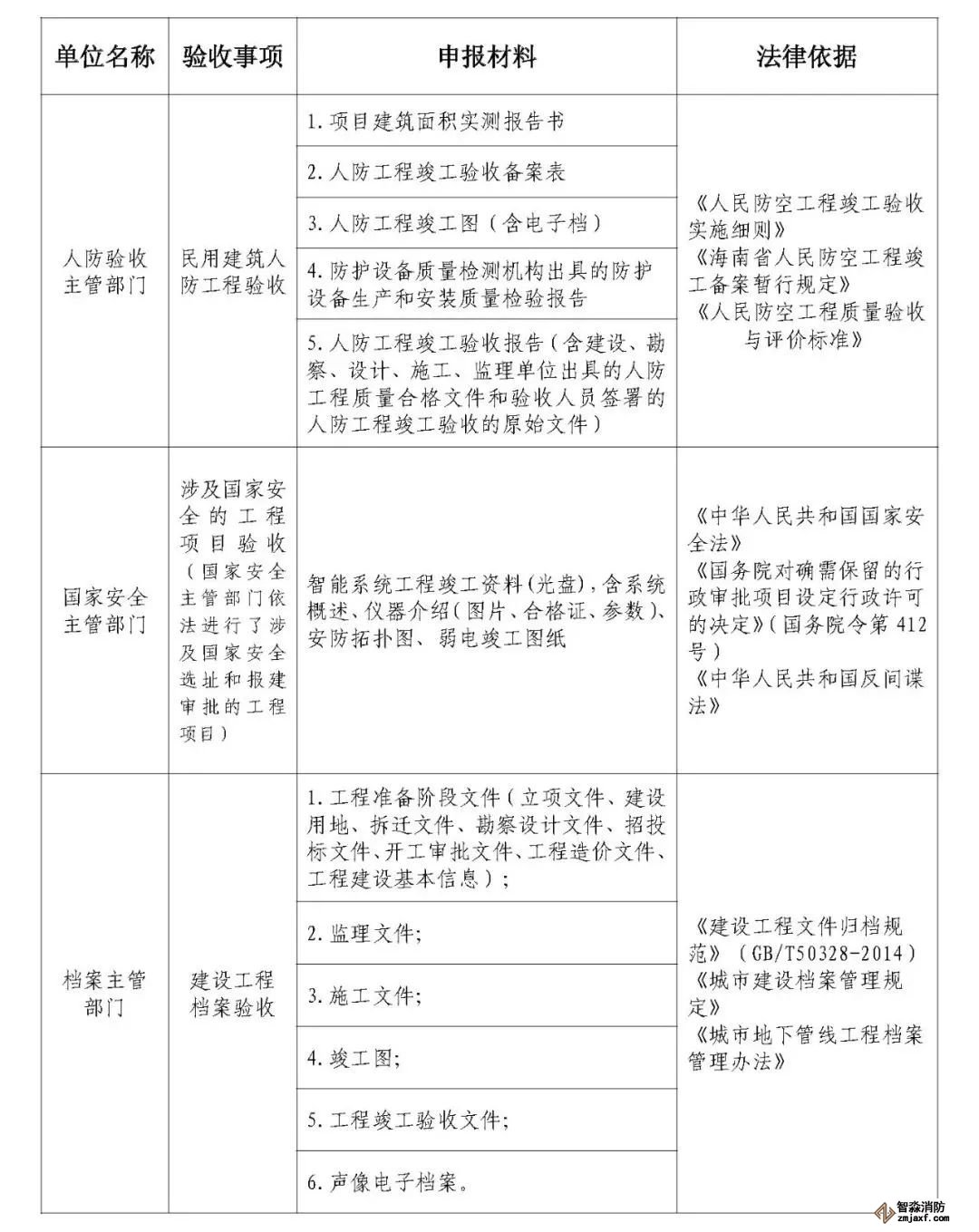 住建、規(guī)劃、消防、人防、國家安全、檔案等驗收主管部門按照職責分工,嚴格執(zhí)行相關法律法規(guī)、驗收規(guī)范以及《房屋建筑和市政基礎設施工程項目竣工聯(lián)合驗收材料清單》(以下簡稱《聯(lián)合驗收材料清單》,見附件2),參與聯(lián)合驗收;各驗收主管部門要主動服務,在工程項目建設過程中指導建設單位提前按相關規(guī)范完成各類檢測及驗收,并積極做好聯(lián)合驗收前有關指導工作。
