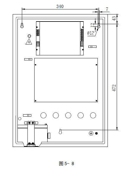氣體滅火控制器采用壁掛式安裝,安裝尺寸如圖5-8 所示。用3 個M6 的膨脹螺栓將GST-QKP04固定在牢固的墻壁上,膨脹螺栓的水平間距為340mm,高度相距472mm。