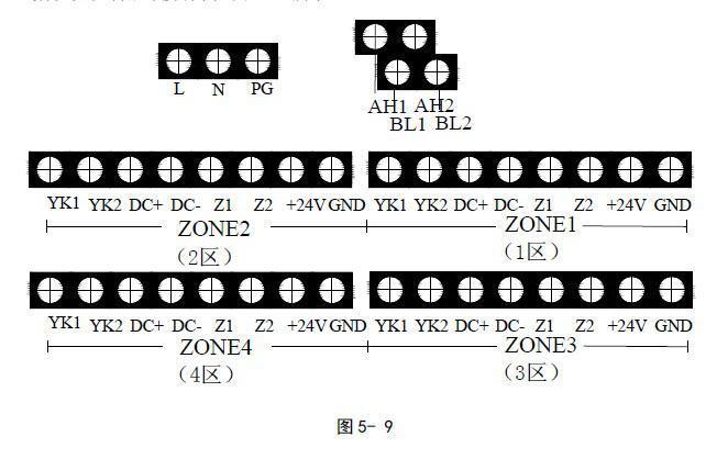 氣體滅火控制器外接端子如圖5-9所示。