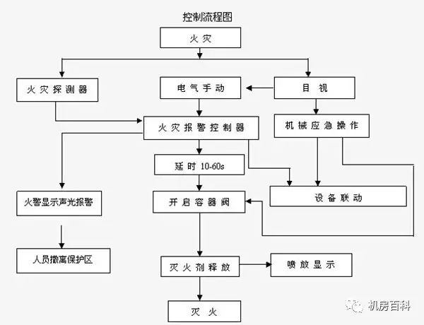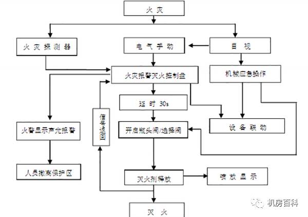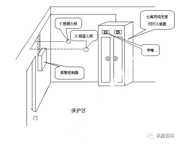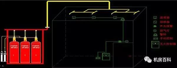2)所有間隔必須密閉固定,藥劑噴放時(shí)無泄漏。系統(tǒng)采用組合分配方式,當(dāng)某個(gè)保護(hù)區(qū)有火情發(fā)生時(shí),煙、溫兩路探頭把火警信號傳至氣體滅火控制盤及控制室,聲、光自動(dòng)報(bào)警并按照預(yù)定模式自動(dòng)延時(shí),啟動(dòng)電磁閥及方向閥,使FM-200儲(chǔ)氣鋼瓶噴放氣體至發(fā)生火情的保護(hù)區(qū), 也可以手動(dòng)放氣或進(jìn)行機(jī)械緊急啟動(dòng)。