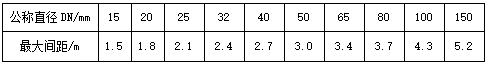 (1)管道固定牢靠,管道支架、吊架間的最大間距應(yīng)符合下表的規(guī)定: