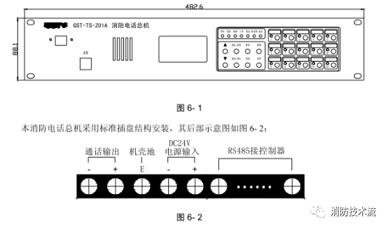GST-TS-Z01A型消防電話總機(jī)外形尺寸及結(jié)構(gòu)示意圖如圖 6- 1 :
