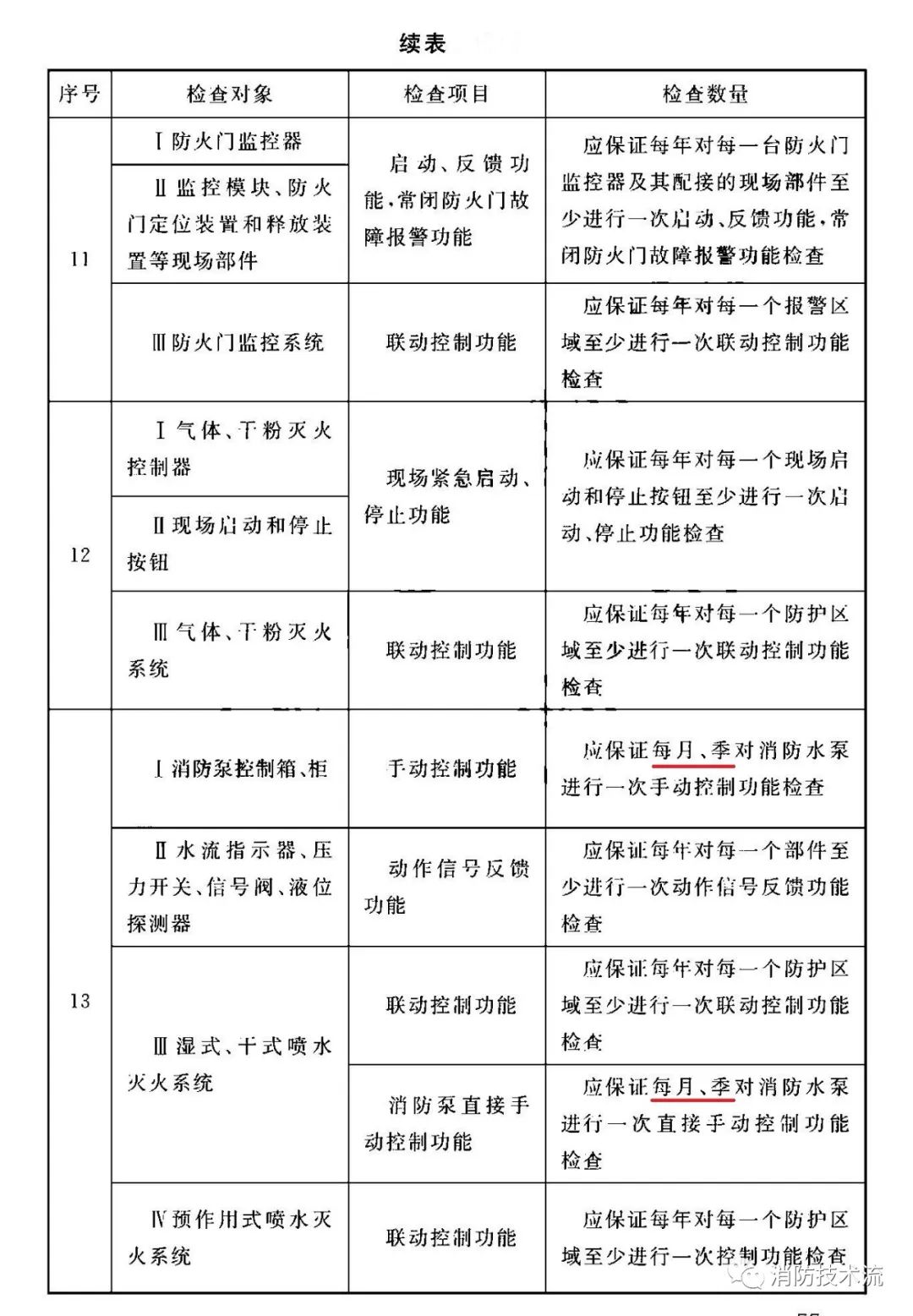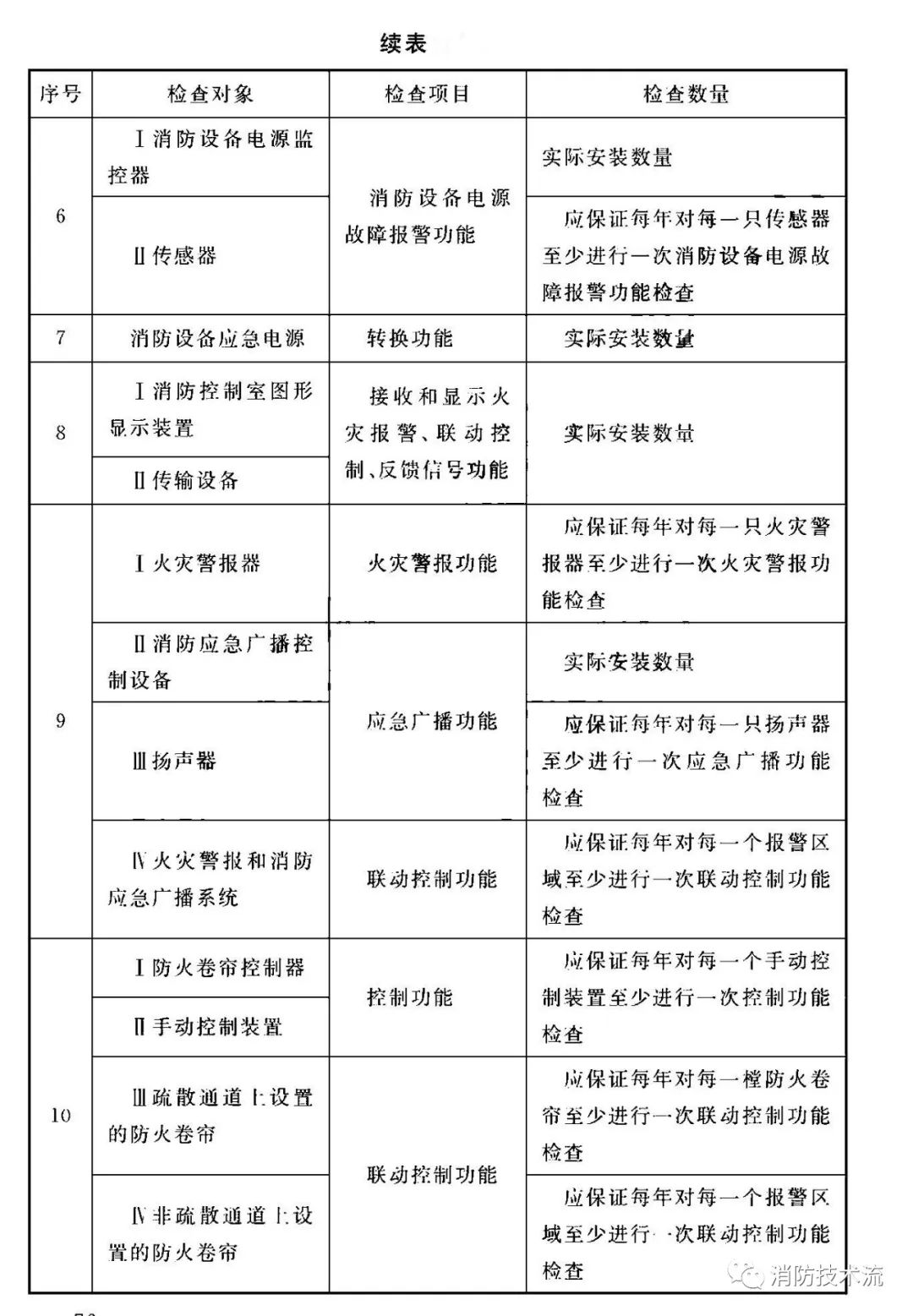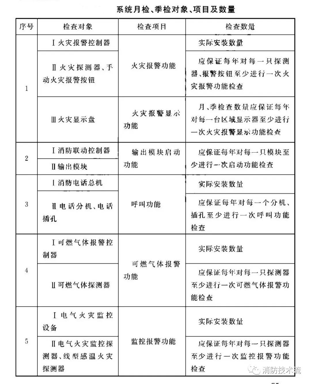 根據《 火災自動報警系統(tǒng)施工及驗收標準》要求,每年應按表中規(guī)定的檢查項目、數量對系統(tǒng)設備的功能、各分系統(tǒng)的聯(lián)動控制功能進行檢查。