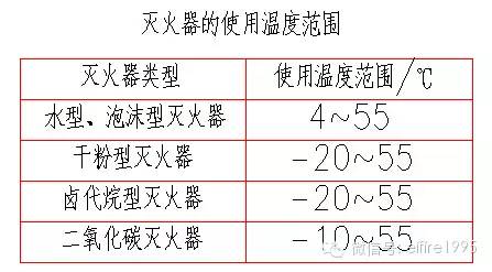 在非必要配置鹵代烷滅火器的場所,不得選用鹵代烷滅火器,宜選用磷酸銨鹽干粉或其他類型滅火器。滅火劑不相容的滅火器不能在同一場合應用,滅火器的適用溫度應符合環境溫度的要求。