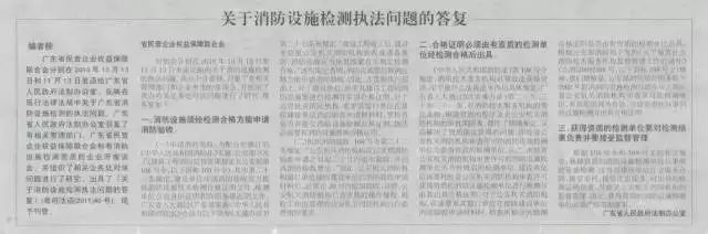 2011年4月13日,廣東省人民政府法制辦公室刊登《關于消防設施檢測執法問題的答復》,明確消防設施須經檢測合格方能申請消防驗收,合格證明必須由有資質的檢測單位經檢測合格后出具,盡管《消防法》規定消防技術服務機構必須依法取得資質,至于依什么法并未作出明確規定。